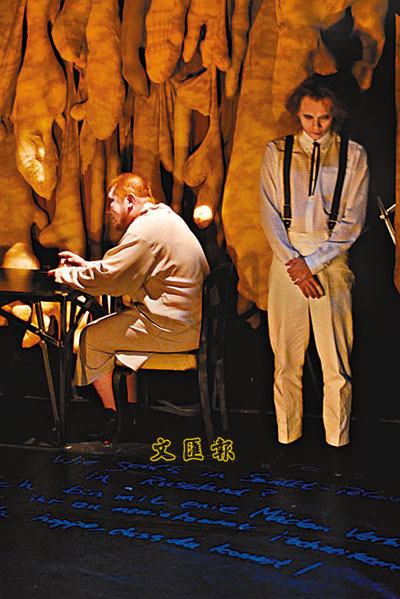固然,《卡》劇實在是牽涉到太多參考了,就連卡夫卡的三個妹妹,也直如《馬克白》中三個女巫一般,以只穿一個空蕩蕩裙架的虛幻造型,在全劇開首預示了哥哥如馬克白般的宿命——徒勞無功地和命運玩遊戲。誠然,舞台上的很多細節,必定令卡夫卡的粉絲雀躍不已,但導演沒有只顧全呈現一個經過創作詮釋的卡夫卡,更在乎忠於他。因此,即若是往往因濫情而甚難處理的情書文字和難以在劇場剎那當下消化的人生雋語,也以相對疏離的場外音加上人物肖像,和演員集體的風格化唸誦。因此,保留觀眾想像和體會的空間而令《卡》劇成為了一次有關卡夫卡的入門精讀。