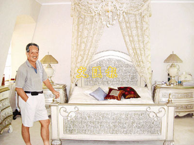 黃宜弘在內地多個城市和香港都有物業,這次他便邀請一眾香港傳媒到深圳家中聚會,大家把酒言歡,暢談金融風暴衝擊及立法會財委會選舉結果。圖為他帶記者參觀他的臥室。