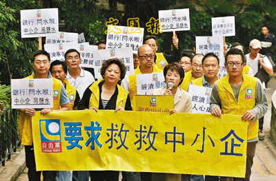 自由黨中小企關注組聯同10多名中小企業僱主,昨遊行至政府總部,要求施政報告推出措施紓解中小企困難。本報記者莫雪芝 攝