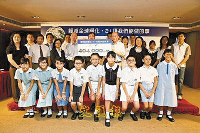 ■綠色力量昨舉行「緩減全球暖化行動」頒獎禮,5間中小學獲「緩減全球暖化-模範學校」獎項。