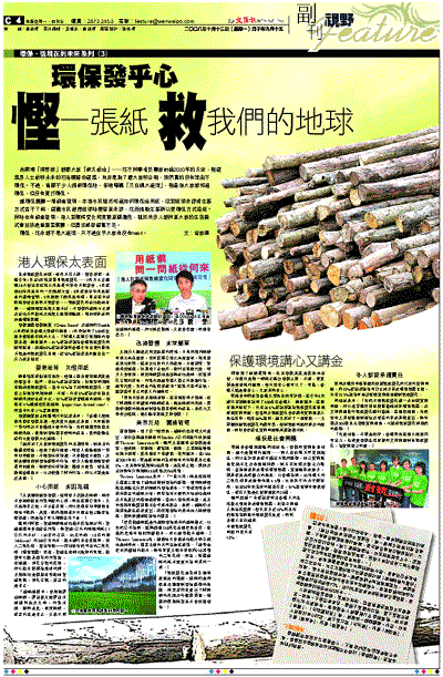 據環保團體一項調查發現,本港市民雖然知道如何環保地用紙,但對紙張來源或生產方式並不了解,建議市民選擇紙張時要留意來源,從而推動生產商以更環保方式造紙。同時也有調查發現,港人對氣候變化和貧窮意識偏低,雖然很多人都同意大家的生活模式會排放過量溫室氣體,但責任感卻嚴重不足。