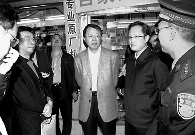 ■深圳市副市長李銘(右三),福田區委書記、區長李平(右二)、福田區安監局長陳慧明(左二)一同視察安全社區創建工作。