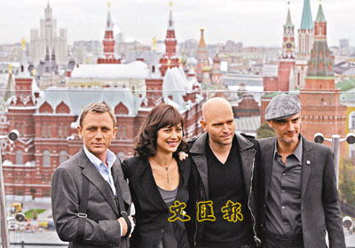 電影《新鐵金剛之量子殺機》的劇組日前在莫斯科宣傳造勢,飾演占士邦的丹尼爾基克和新邦女郎奧嘉古莉寧高等都有出席,還與導演馬克科士打等在戶外會見記者朋友。右手受傷的丹尼爾仍需要包紮固定傷肢,但看來精神不俗,他還說笑︰「我想占士邦一定是很討厭女人的,之前每集都會見到邦女郎穿上性感的比堅尼,所以這一集找來會打的邦女。」隨著電影上映在即,新邦女郎奧嘉在3年前全裸演出的電影《The Ring Finger》即將推出DVD,借勢做宣傳。