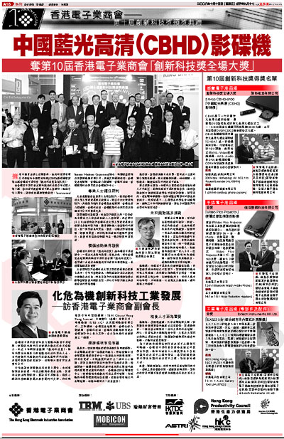 ¡@¾Ö¦³¤¤°ê¦Û¥D®Ö¤ß§Þ³N±M§Q¡A¥Ñ·s¬ì¹q·~¦³¤½¥q¬ãµoªº¤¤°êÂÅ¥ú°ª²M(CBHD)¼vºÐ¾÷¹Ü±o²Ä10©¡»´ä¹q¤l·~°Ó·|¡u³Ð·s¬ì§Þ¼ú¥þ³õ¤j¼ú¡v¡C