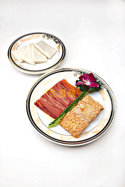 ■由雲南火腿、蜜糖、腐皮等製成的蜜汁烤雙方,在爽脆的腐皮上是鮮甜的蝦膠,口感彈牙有層次。$140