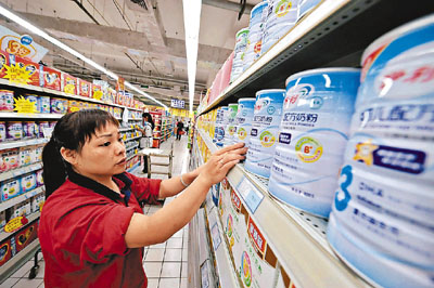 ■安徽合肥市一家超市響應下架通知,員工將9月14日前生產的乳製品下架封存,將9月14日以後生產的乳製品替換上架。 新華社