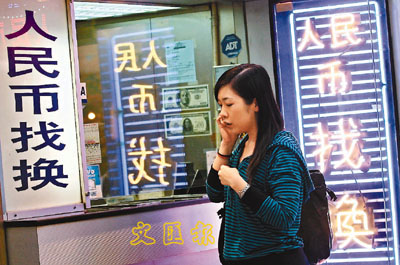 ■香港居民對人民幣的需求減退。圖為香港的人民幣找換店。 資料圖片