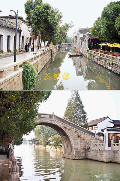 ■蘇州古城的小河流水(上圖)。寒山寺外的楓橋(下圖)。