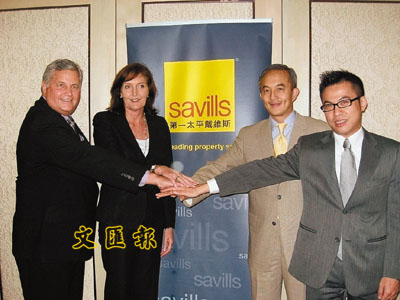 ■第一太平戴維斯方文彬(右二)及周德輝(右一)與美發展商代表合攝。