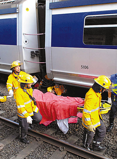 ■癡情OL疑不堪情變,在港鐵九龍塘站跳軌自殺,慘遭埋站列車捲入車底,由消防員救出時已證實身亡。