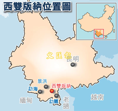 西雙版納傣族自治州總面積19,184.45平方公里,與老撾、緬甸、越南接壤。人口100多萬。居住著傣族、哈尼族、布朗族、基諾族、拉祜族、佤族、瑤族等十幾個民族。