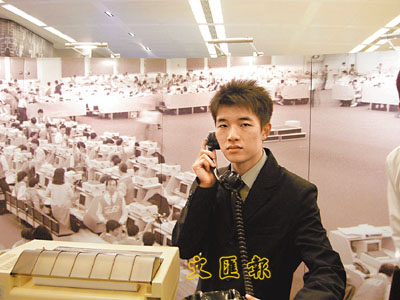 ■劉樂坤從小在港對投資致富的信念耳濡目染,因此入讀大學後選修經濟。圖為他參觀港交所留影。本報廣州傳真