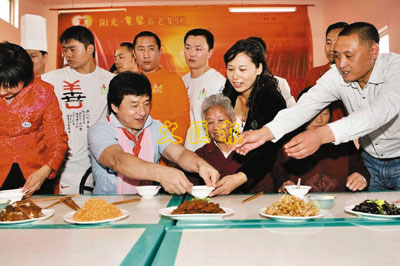 ■眾長者見到成龍十分開心,更齊包餃子給成龍品嘗。