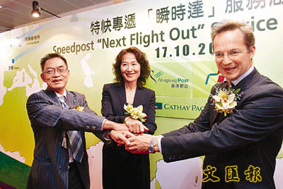 ■「瞬時達」由香港郵政、國泰貨運及保時達快遞合作。 本報記者劉國權 攝
