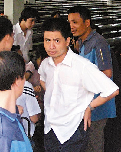 ■幾名工人在商議對策,一名工人無奈地看著記者的鏡頭。 本報記者攝
