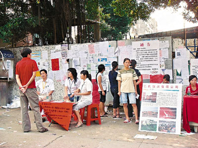 今天上午,記者再次來到樟木頭俊領、合俊兩個工廠,工廠外面依舊圍滿了人,但與前兩天不同的是,已領到了8月份工資的工人心情平靜了許多,他們多數是來看其他企業招聘信息的。而從廣州、深圳等地方趕來招聘的企業工作人員卻忙碌著。
