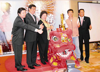 ■高雄市市長陳菊(左三)出席由高雄市政府、台灣觀光協會及中華航空公司在香港主辦的「浪遊高雄」推廣活動。 中央社