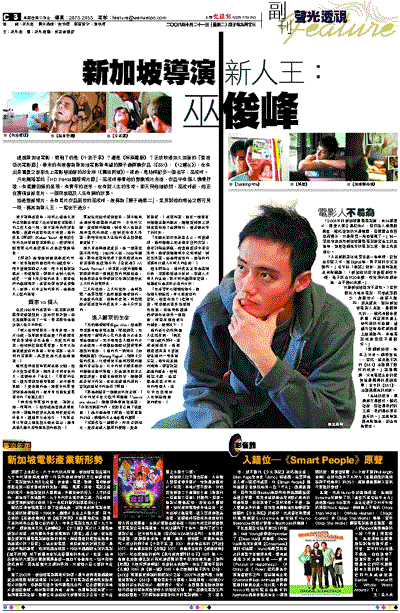 提起新加坡電影,想到了的是《小孩不笨》?還是《海南雞飯》?正放映得如火如荼的「香港亞洲電影節」,帶來的有被譽為新加坡電影新希望的陳子謙兩齣作品(《881》、《12蓮花》),也有出身富貴之家卻走上電影藝術路的邱金海(《魔法阿爸》)。或許,是時候記多一個名字:巫俊峰。