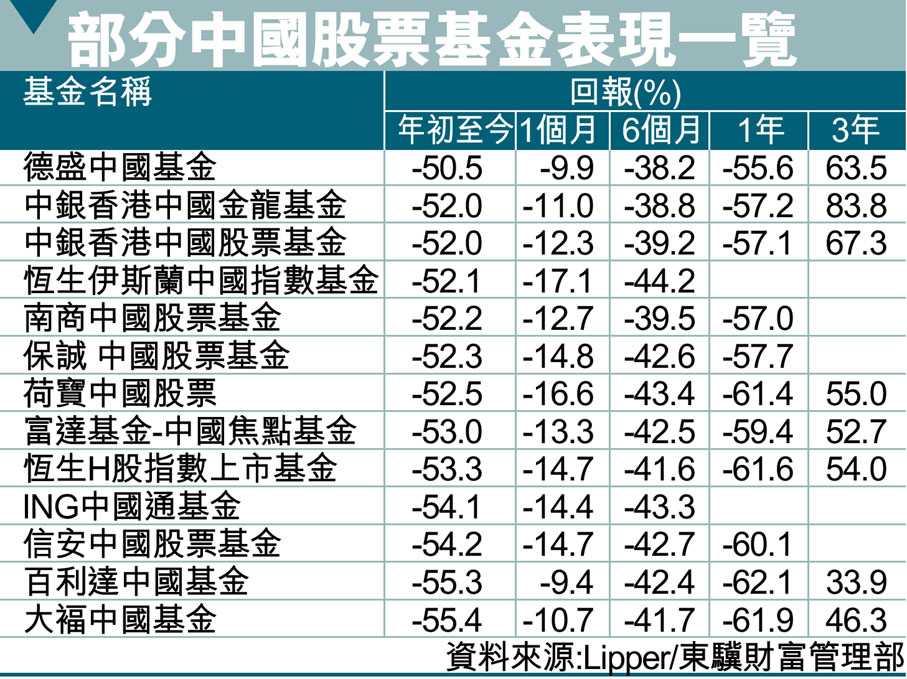 部分中國股票基金表現一覽 (2008-10-22) (圖)