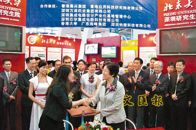 本次簽署協議的7家企業中有2家為港企。其中,香港晨興集團出資800萬美元成立新技術研發公司,專門負責北大深圳研究生院化學基因組實驗室新技術的產業化;香港應用科技研究院有限公司則與該院信息工程學院合作,共建集成電路實驗室。
