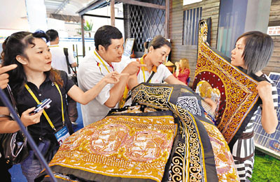 ■緬甸織綿工藝品在東博會上備受青睞。 新華社