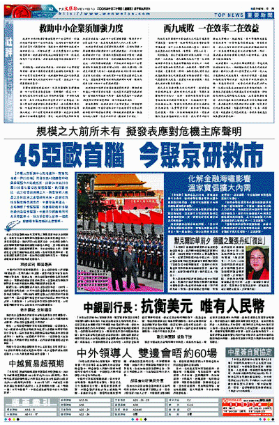 對此,上海國際問題研究院院長楊潔勉說,亞歐領導人「在一起就當前這場金融風暴的危害以及應對的戰略和政策交換意見,這本身就是全球應對這場金融風暴的重要組成部分」。他認為,在這種非常時刻,「亞歐領導人在首腦會議上共同對外發出的信息,必將受到整個國際社會的關注。」