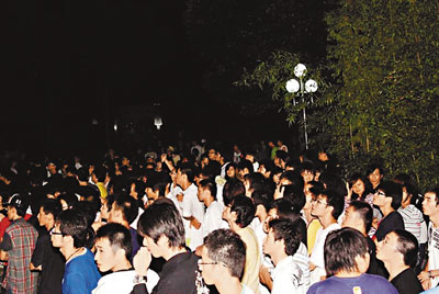 ■因不滿日本學生辱華言論,數百中國學生聚集在留學生宿舍樓下表示抗議。 網上圖片