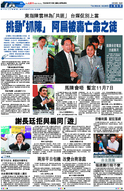 【本報訊】綜合台灣媒體24日消息:陳水扁自從機要費與洗錢案爆發以來,不斷下鄉取暖。24日中午,扁還對媒體表示,陳雲林是「共匪」,他如果敢來台灣就要將他抓起來,還大聲嗆聲說:「我們就把他抓起來!馬政府不敢抓,我們來抓!」對此,資深媒體人林朝鑫認為,陳水扁口口聲聲說別人是匪類,但他自己才是真正的匪類,因為他將台灣人民的血汗錢轉到自己的賬戶中。