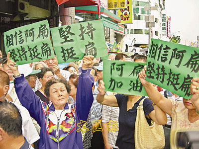 ■陳水扁上月到高雄「取暖」時,扁迷熱情相挺。 資料圖片