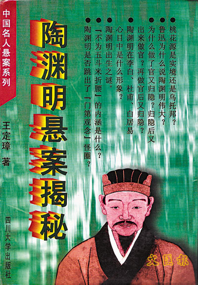 繼續翻書,找到一本看似是噱頭的書:《陶淵明懸案揭秘》(王定璋著,成都:四川大學出版社,一九九六年十月),封面即有一條小標題:〈「不為五斗米折腰」的內涵是甚麼?〉頓喜,忙翻閱。行文學術味道足,駁斥逯欽立「五斗米」即「五斗米道」的說法尤精彩。所謂「五斗米道」,指早期民間道教而言,相傳入道者須交五斗米,因以為名。陶淵明不屑於向門閥世族王凝之這個五斗米道徒卑躬屈節,所以才棄官歸隱。王定璋大不以為然,引論否定,但他最後的結論還是「微薄的官俸」。我又一次失望。