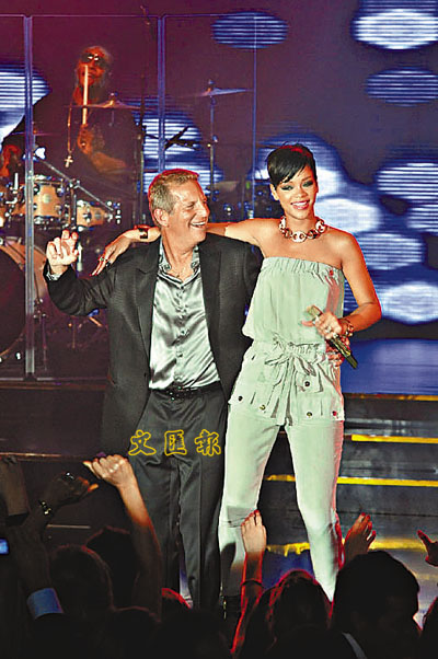 女歌手李玟(CoCo)日前為未婚夫Bruce Rockowitz舉行名叫「Studio 50」的盛大生日派對,以慶祝他踏入50歲,除廣邀城中名人出席外,還請來當時得令小天后Rihanna和黑人搖滾歌星Lionel Richie等猛人擔任表演嘉賓。當Rihanna上台獻唱多首大熱作品時,Bruce索性跳上台與她齊齊起舞,至於Lionel Richie(見下圖)演出之際Bruce亦附和地手舞足蹈,玩得十分盡興。據知CoCo斥資過千萬搞這個世紀生日派對,看見未婚夫這麼高興,當然值回票價哩! ■文︰曼迪