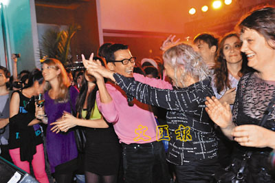 ■梁家輝與服裝品牌設計人翩翩起舞。