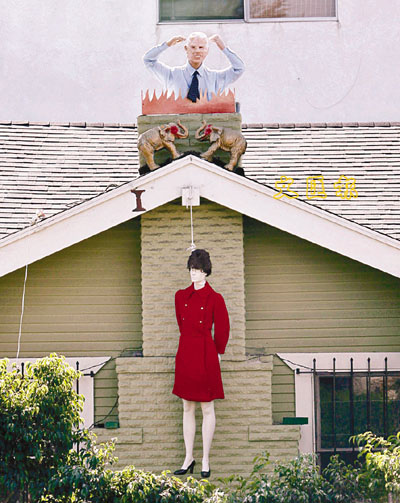 美國加州西荷里活巿有一戶人,在家門口將共和黨副總統候選人佩林的假人問吊,並在煙囪頂「火燒」麥凱恩的假人,作為萬聖節裝飾,巿長隨即譴責。