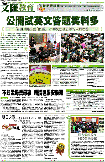 【本報訊】(記者 任智鵬) 考評局昨出版今年會考及高考的評卷參考及考試報告,在最受社會關注的英文科,不少考生在串字、文法、發音等方面都未如理想。在作文卷中,park(公園)、part(部分)不分,有考生不懂串機械人(Robot),結果全文都是「Robert(人名:羅拔)」;聆聽卷中考生不能分辨近音字而亂寫一通,如「訓練頭腦(train your brain)」寫成「換腦(change your brain)」,效果惹笑。