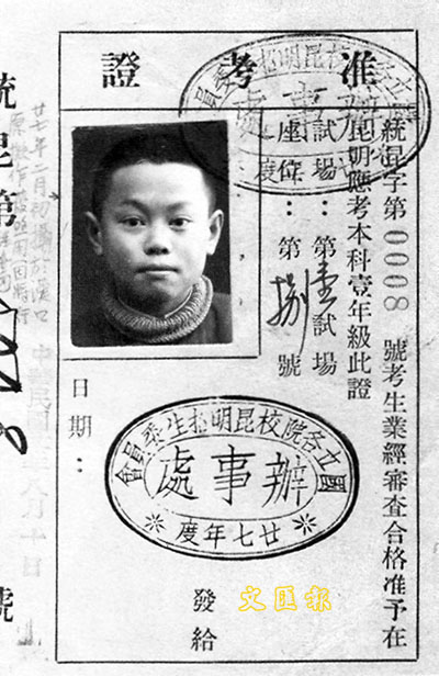 ■諾貝爾獎得主楊振寧1938年秋應考西南聯大的准考證。 資料圖片