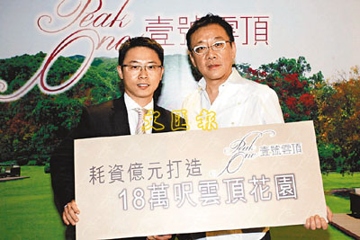 ■新地胡致遠(左)與貝爾高林許大絢,介紹沙田壹號雲頂的18萬呎「雲頂花園」。本報記者張偉民 攝