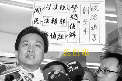■王定宇昨日下午在台南市服務處召開記者會指出,張銘清案件起訴之快,求刑之重,都是台灣司法史上罕見的,並指這不是司法案件,而是政治案件。 中央社