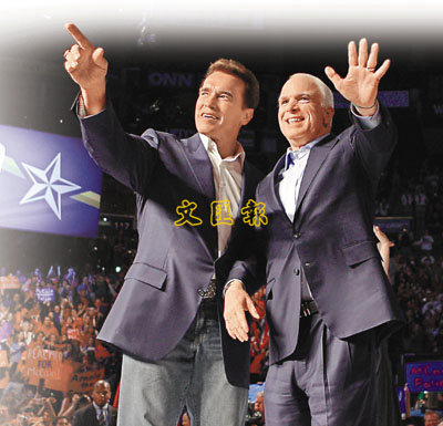 ■阿諾前日到俄亥俄州為老麥拉票,他指老麥當戰俘的時間比小奧任議員的還要長。 路透社