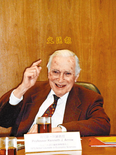【本報訊】(記者 狄夢宇)1972年諾貝爾獎經濟學獎得主肯尼斯.阿羅昨在香港中文大學進行演講,對於金融危機席捲全球,他認為整個經濟危機至少還要持續1年左右,較悲觀的預測是經濟衰退將會持續數年。