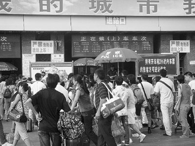 ■廣州火車站出現眾多民工返鄉的身影。 資料圖片