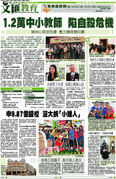 【本報訊】無病不代表健康。現代社會節奏快,肩負培育下一代重任的老師,壓力更是沉重,分分鐘有爆發情緒病的危機。有調查顯示,近1/4中小學老師的精神心理處於困擾狀態,若問題持續,可能出現抑鬱、焦慮症以至萌生自殺念頭,按教師總人數推算,全港有達1.2萬名「問題教師」。同時,亦有近半人為精神上的「亞健康」,即其精神心理有潛在問題,若不正視亦會隨時惡化,情況令人擔憂。