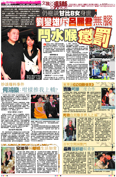 而昨日,大劉如常回灣仔返工,下午五時多離開公司後,座駕直往灣仔君悅酒店皇朝會。而身穿便服的呂麗君昨午在女友人陪伴下乘坐車牌「1 L0VE U」的車輛出巡,被傳媒追訪的她神態自若似乎作最後的絕地反擊,「1 L0VE U」是大劉06年以160萬港元投得的。