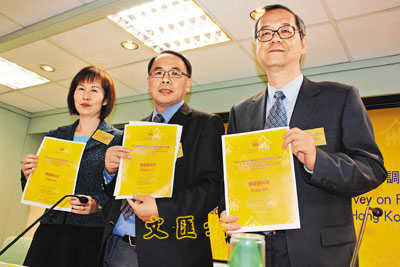 ■邵一嗚(右)表示,去年香港婦女平均生育子女數目只有1.5名,較1977年平均3.3名子女下跌近半。右為家計會執行總監范瑩孫。本報記者邱益忠 攝