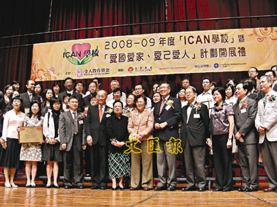 ■「全人教育基金」在公布調查後,舉行08年度開展禮,並頒發「學校 ICAN人」獎項。圖為得獎學校及教師。本報 攝