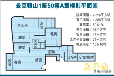 香港測量師學會表示,樓則大獎除需要合適的實用率外,更要顧及低使用面積率如走廊、玄關等佔用面積的比例,而樓底高度、座向、景觀、廳及房間形狀、間隔靈活性及傢具擺放容易度等,都是評審標準,經委員評審,由曼克頓山的1座50樓A室奪得此項大獎。