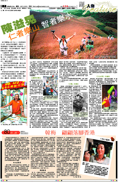 80年代初,陳溢晃自資不定期出版《旅行家》雜誌,專門介紹被大多數香港人忽略的本地古跡和民間風俗。從策劃、約稿、編輯再到撰稿,依然是一個人。到今年為止,只有18期。「雜誌去不了報紙攤檔,他們要計發行量。雖然我每次最多印1500冊,但大部分是送比賣多。」也不是完全沒有回應者,大學歷史系教授、資深領隊成了重要作者。