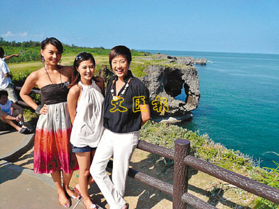 ■張家瑩、袁彌明和黃麗梅介紹沖繩文化。