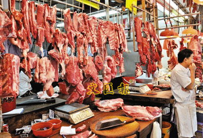 ■港鮮豬零售價加減「無王管」,自年初起鮮豬批發價一直下滑,零售價卻不跌反升。圖為營業中的豬肉檔。資料圖片