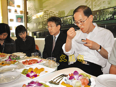 ■曾德成與張仁良到訪一所社企甜品店,並親嘗甜品。 本報記者嚴敏慧 攝
