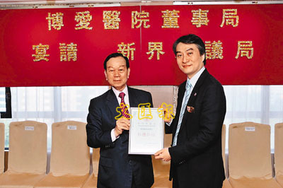 董事局藍國慶主席則藉此機會,向劉皇發主席致衷心謝意。因劉主席早在23年前已擔任博愛醫院董事局主席,建樹良多;此外,新界鄉議局多年來支持與協助,成功籌募善款,擴展多項社會服務。